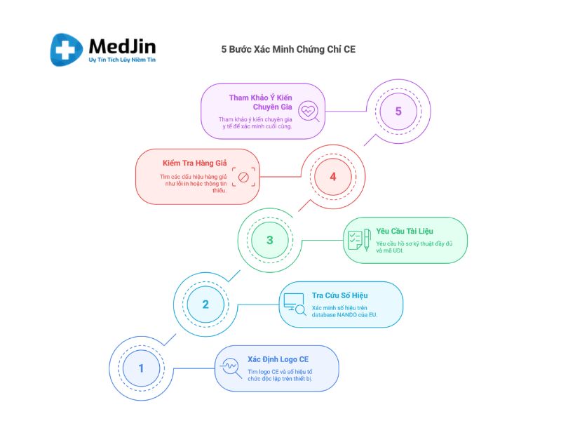 Đừng bỏ qua dấu hiệu hàng giả: lỗi in ấn, thiếu thông tin nhà sản xuất, tài liệu sử dụng không rõ ràng hoặc không có bản chứng nhận đi kèm đều là cảnh báo. Thiết bị chuẩn CE cũng cần có mã định danh UDI để dễ truy xuất nguồn gốc trên hệ thống EUDAMED.